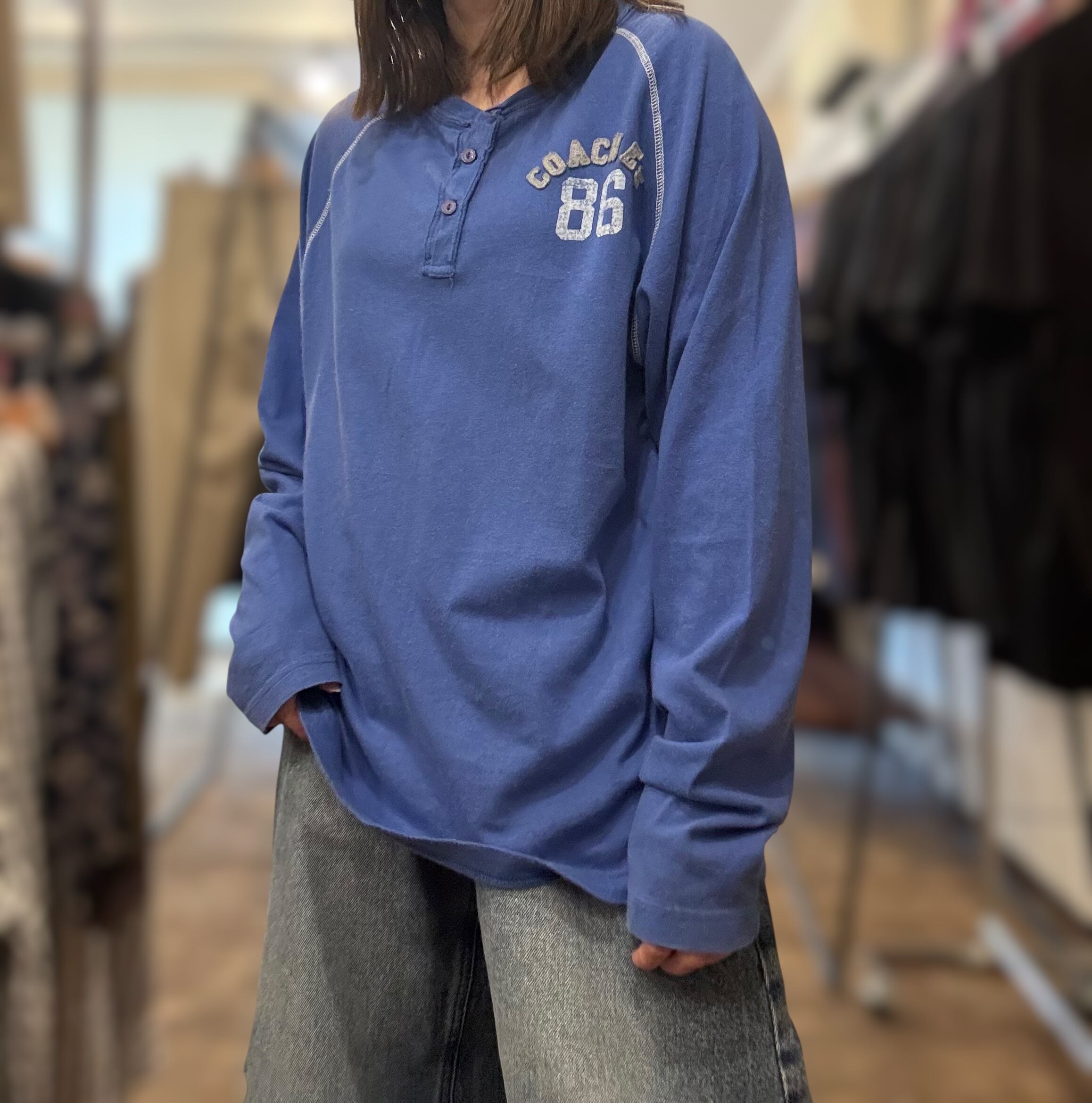 half button numbering long sleeve tee