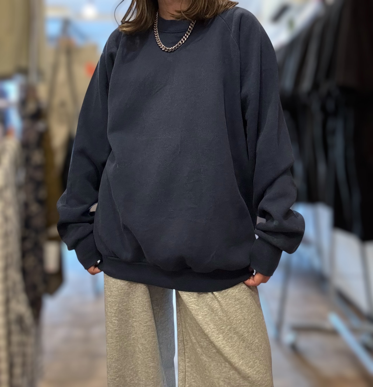 ラグランタイプのプレーンスウェット。