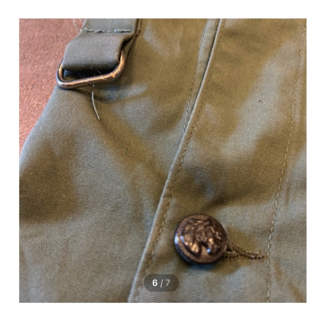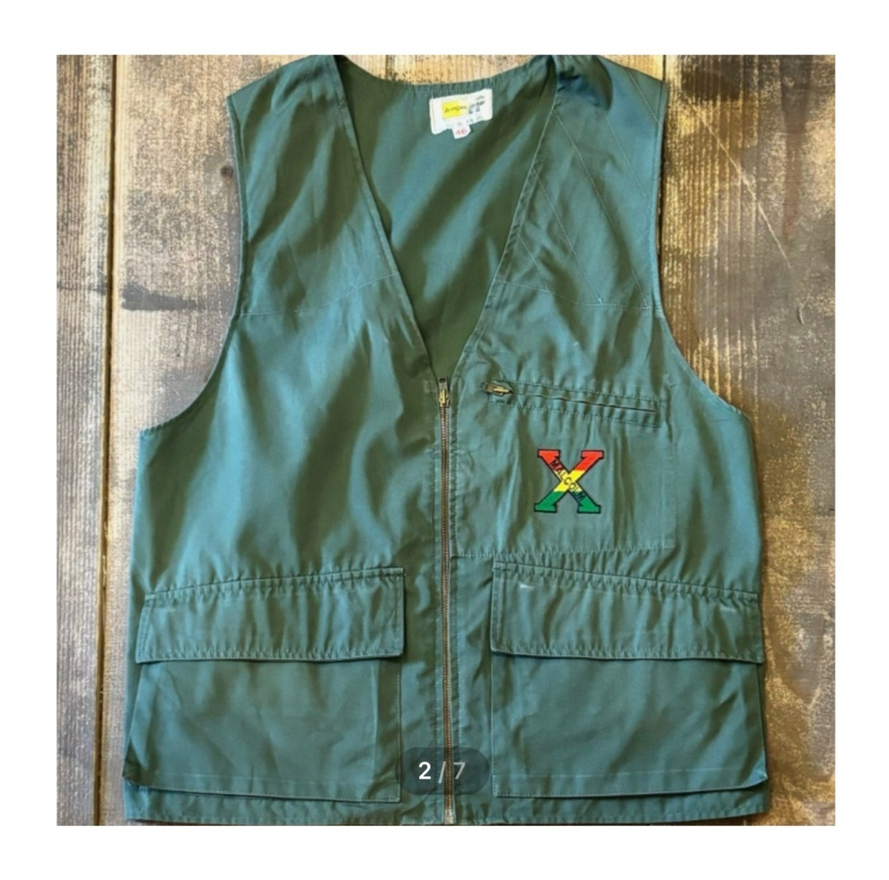 古いものだと新しいボタンにつけ直されているものも多いですが、こちらは動物ボタンがしっかり残っている点もポイントです。胸元収納ポケットには刺繍ワッペンも後付けで施されています。